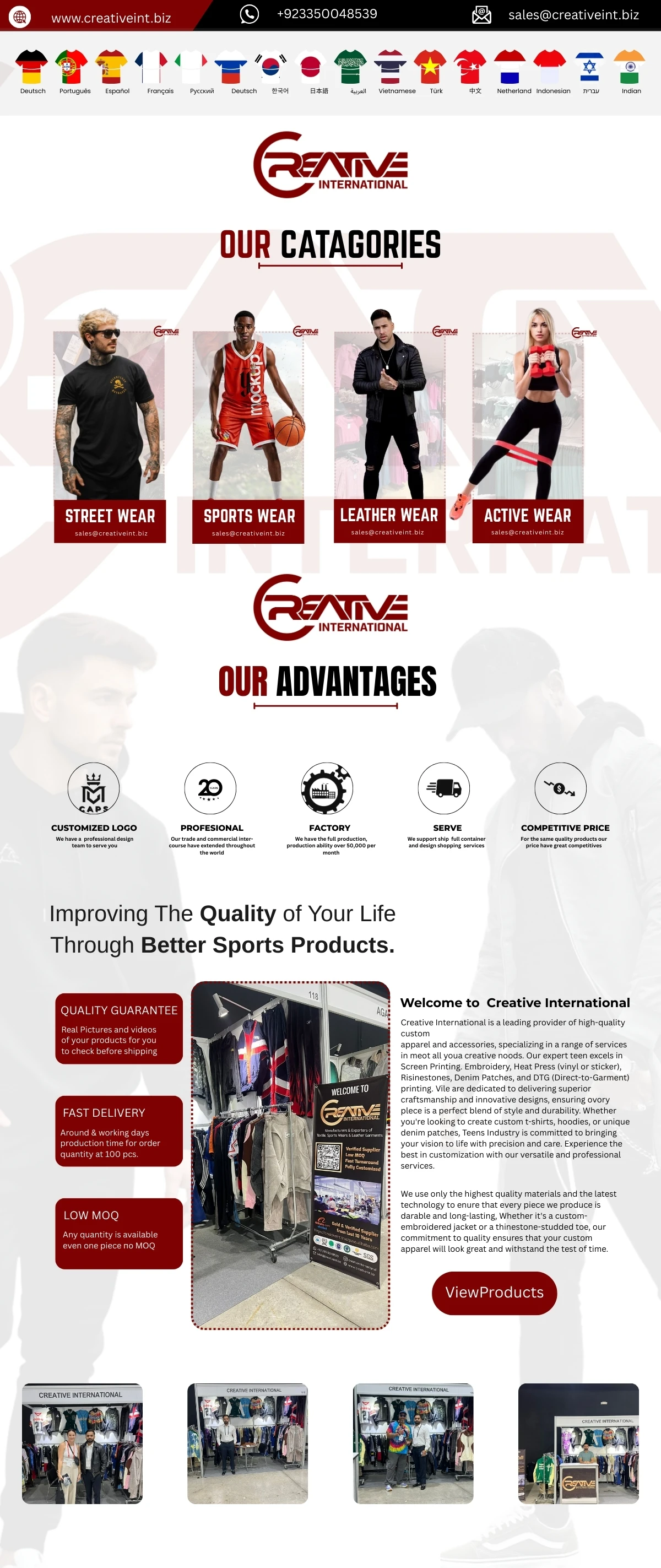 CREATIVE INTERNATIONAL established in 2015 and based in Sialkot, Pakistan, is a company that specializes in the design, providing OEM services such as pattern designing manufacture and sale of an extensive line of quality Leather and Textiles Garments which including Street Wears, Fashion wears, Sports wears etc. We are the first Streetwear’s product manufacturer run by high level professionals in Pakistan. With a total area of over 729 square meters and 30-35 skillful employees, the company boasts an impressive annual sales figure of around 2 million U.S dollars.
